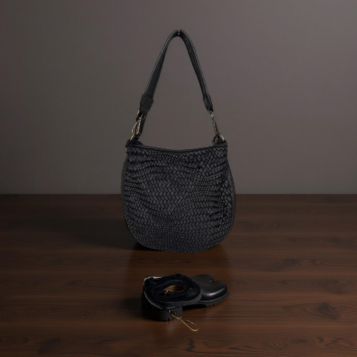 The adjustable shoulder strap offers versatile carrying options for the discerning wearer.
