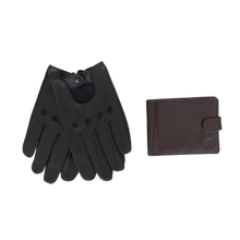 - Genuine leather stylish black men`s gloves + brown wallet.