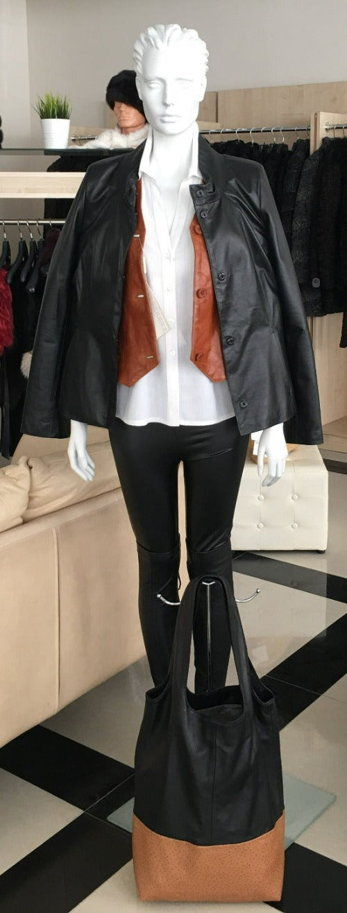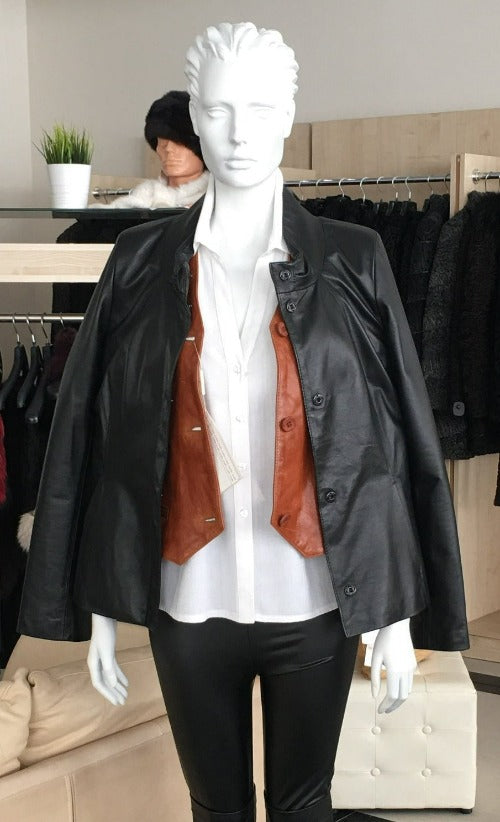 Black short sheep leather jacket