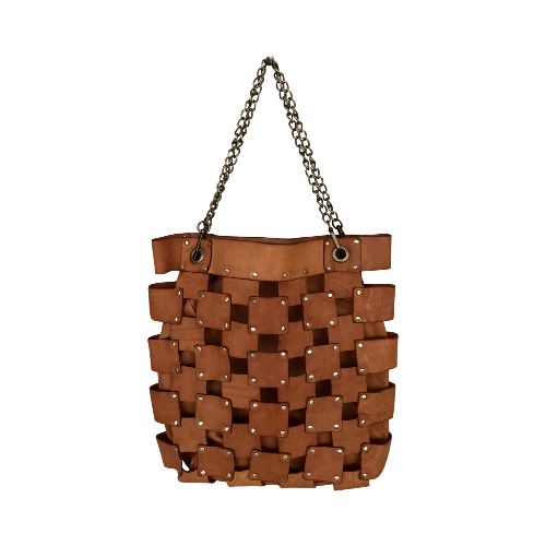 This medium-sized leather shopper exemplifies contemporary Italian craftsmanship with its striking aesthetic.